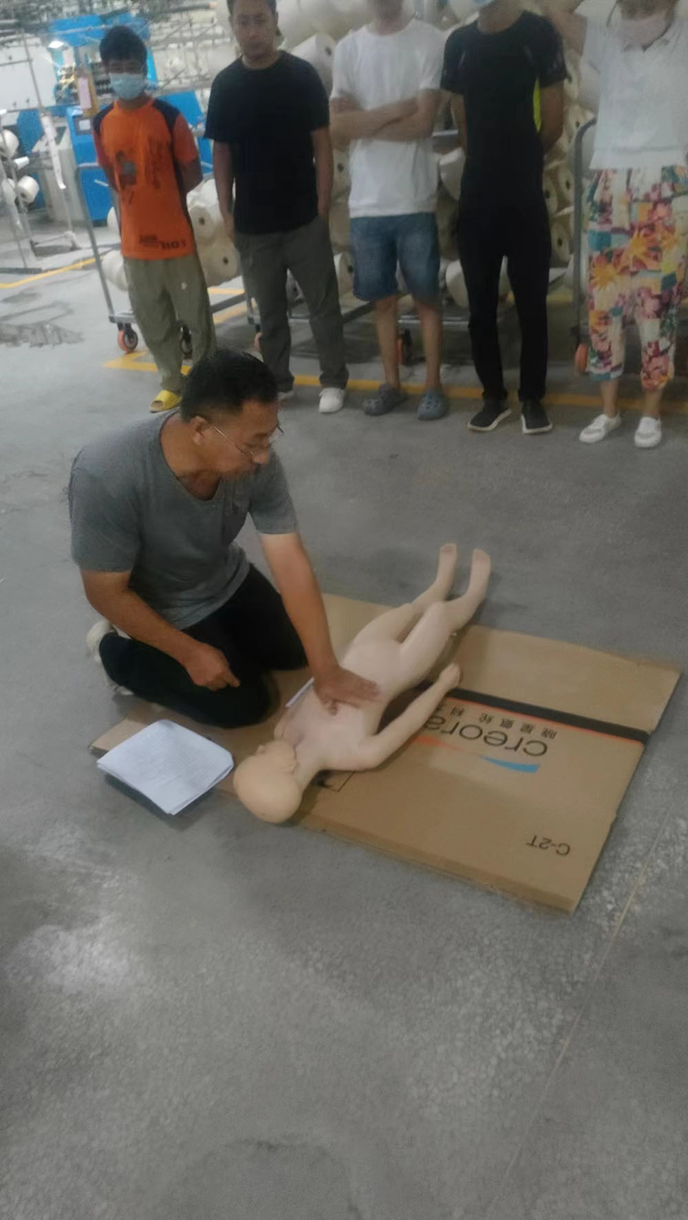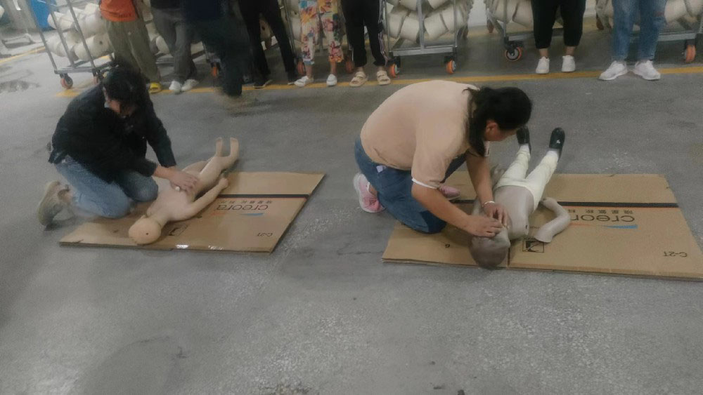 隨后,公司組織員工進行了休克、昏迷緊急救護演練,呼吸心跳驟停緊急救護演練,所有員工參加了心肺復蘇操作訓練。
