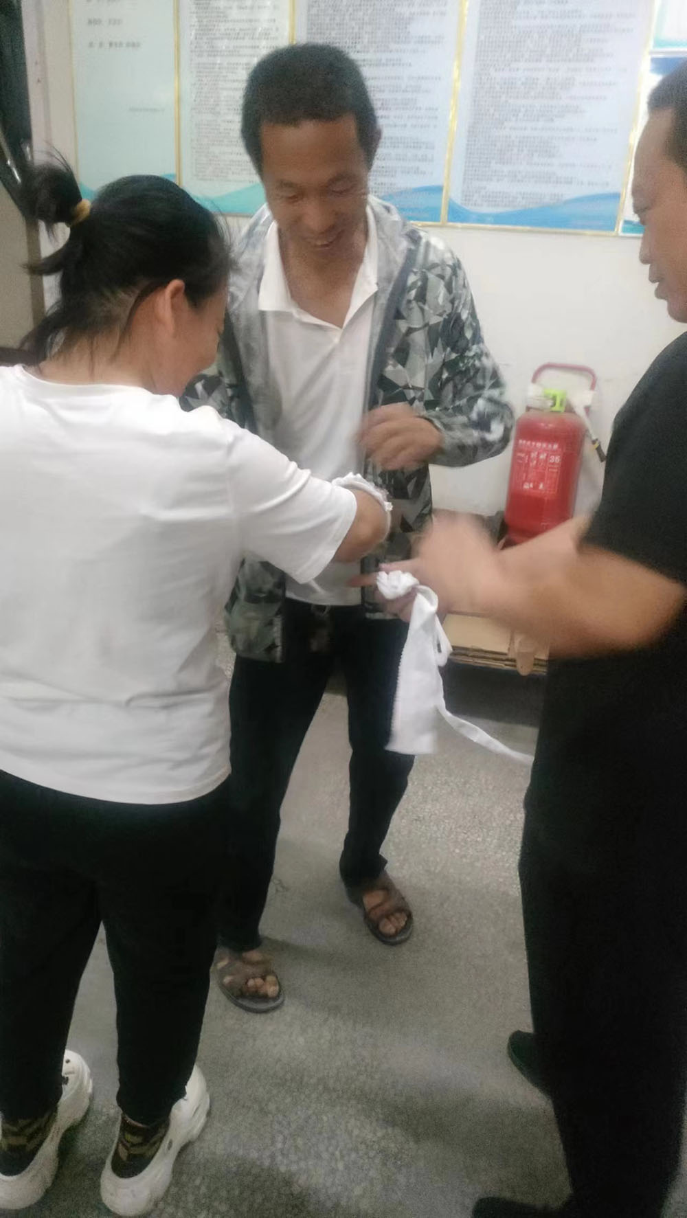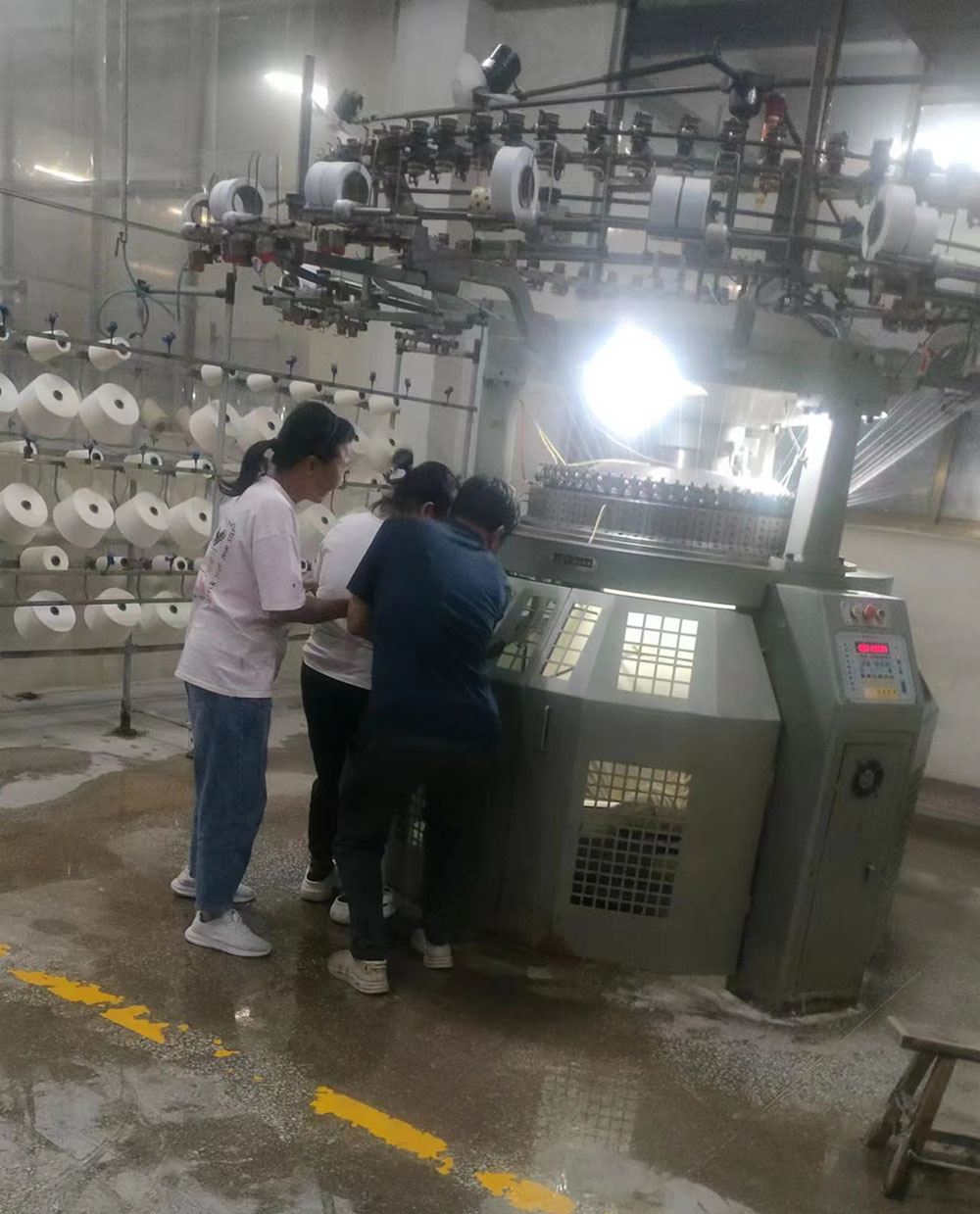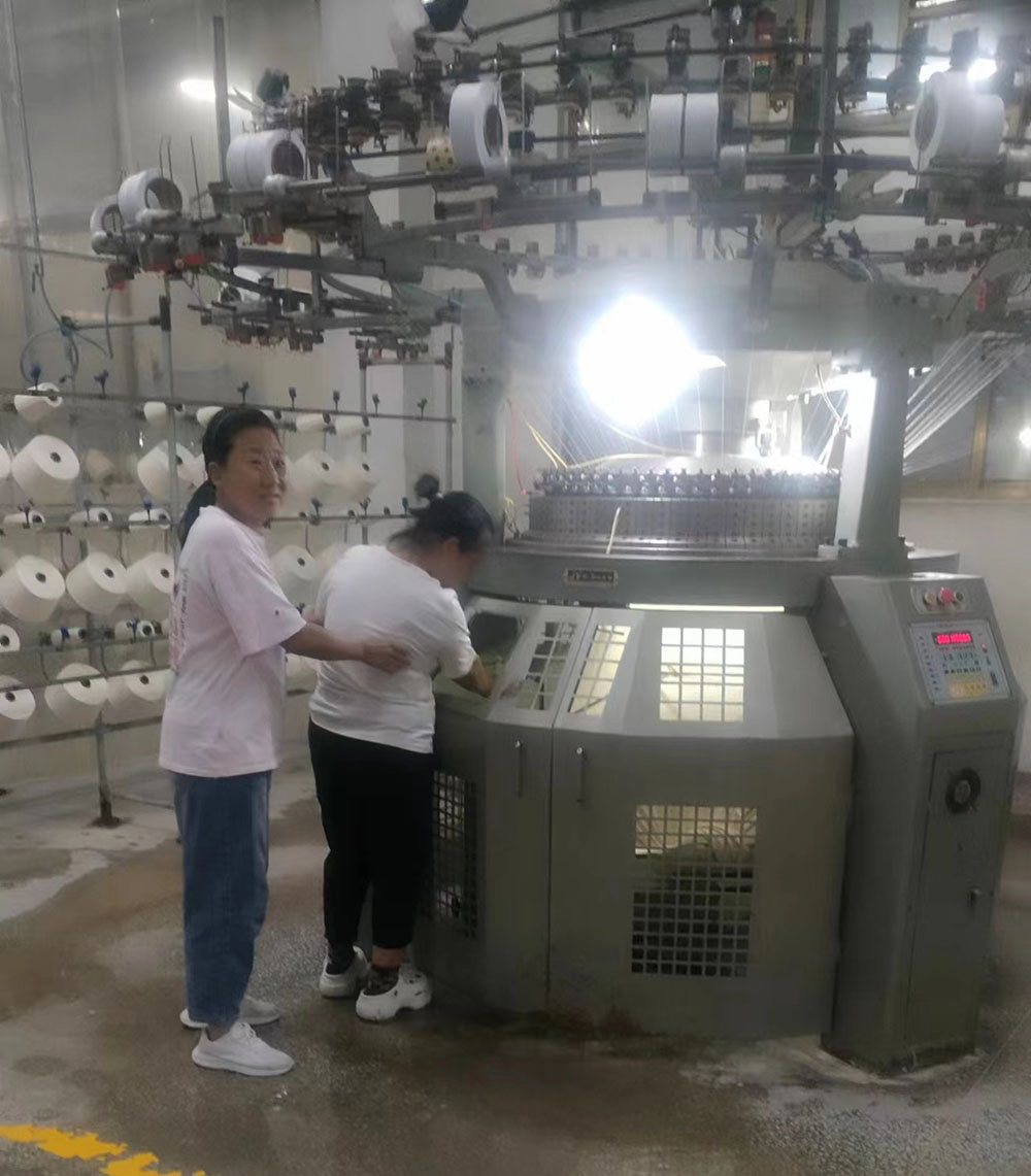 首先,模擬車間生產(chǎn)現(xiàn)場出現(xiàn)機械傷害事故,有員工被卷入大圓機中受傷,馬上啟動應急預案。各應急小組緊張地投入到應急救援工作之中,搶救傷員、救護包扎、緊急聯(lián)絡,各項工作有序展開。救援小組立即關停機器,將受傷員工從機器中搶救出來。救護小組給傷員檢查傷情,包扎止血。聯(lián)絡小組打120請求派救護車緊急救護,受傷員工得到了及時救治。